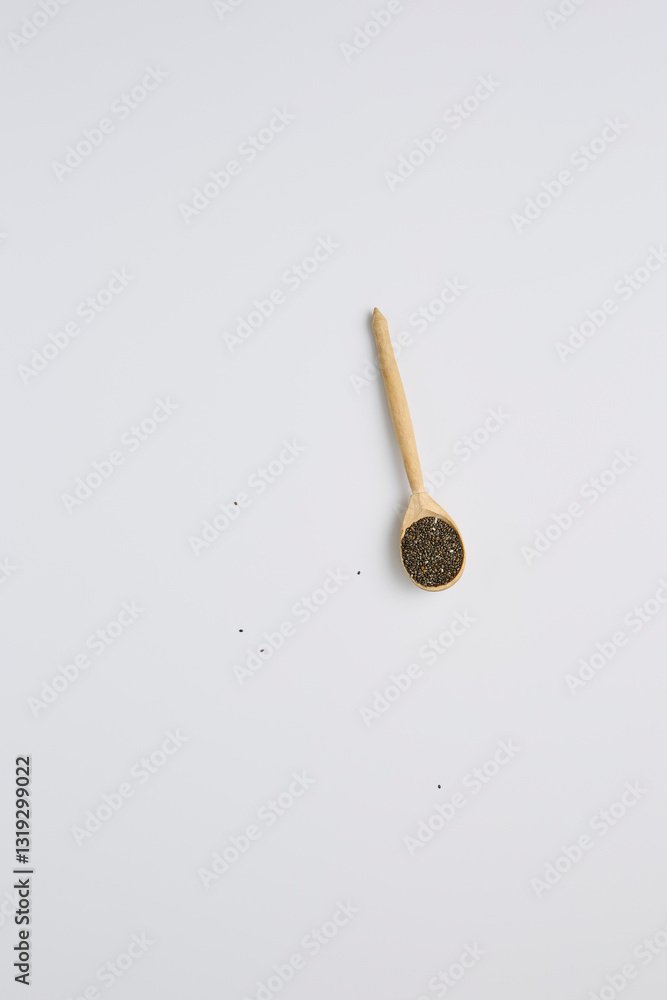 Minimalist Chia Seeds on Wooden Spoon - Simple Elegance with Neutral Tones and Soft Lighting