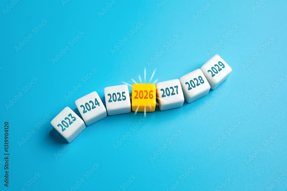 The year 2026 stands out clearly in the chain. Significant marker in timelines, plans, or forecasts. Key events, milestones, or economic changes.