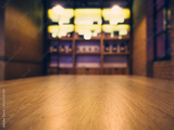 Table top with Blurred Bar Shelf restaurant cafe interior background