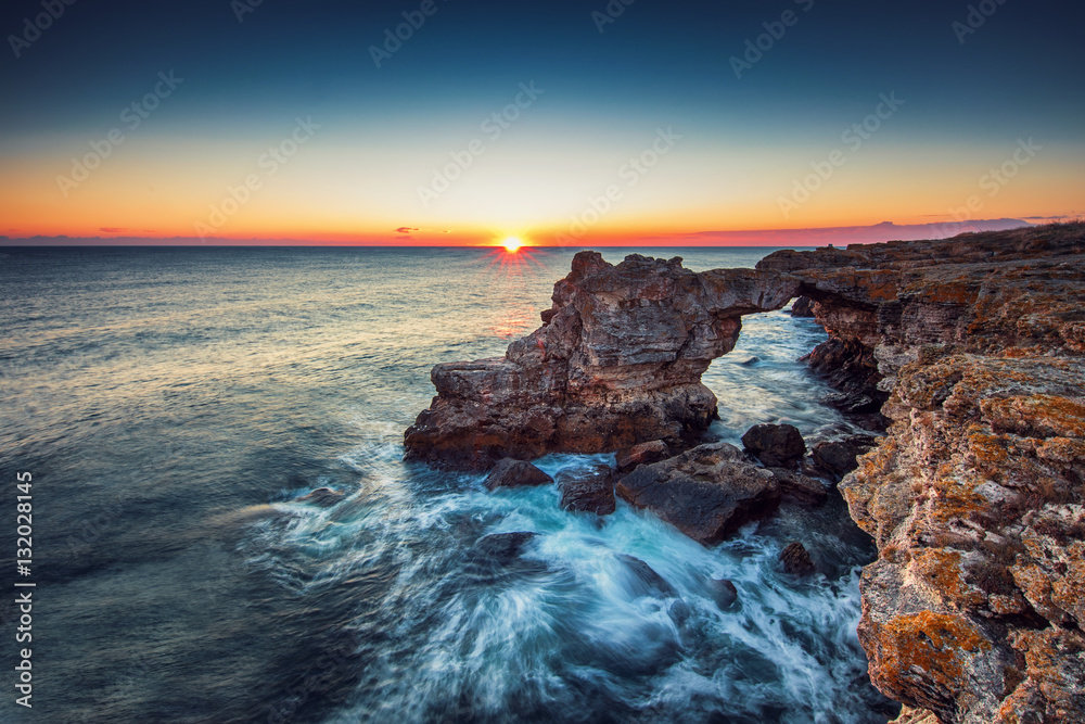 The Arch - rock formation near Tyulenovo. Long exposure shot
