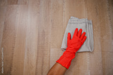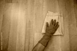 Close-up Hands Cleaning The Parquet Floor Using Dust Cloth