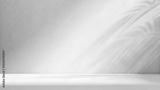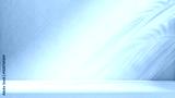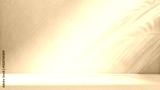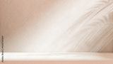 Blurred shadow from palm leaves on the light beige wall. Minimal abstract background for product presentation. Spring and summer.