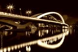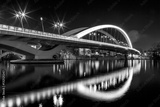 Illuminated bridge Raymond Barre over the Rhone river in Lyon at night.