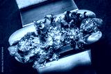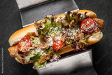 Enjoying a delicious hot dog adorned with vibrant toppings, perfect for street food lovers