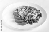Vibrant salad featuring fresh vegetables, tuna, and herbs on a clean white plate, perfect for lunch