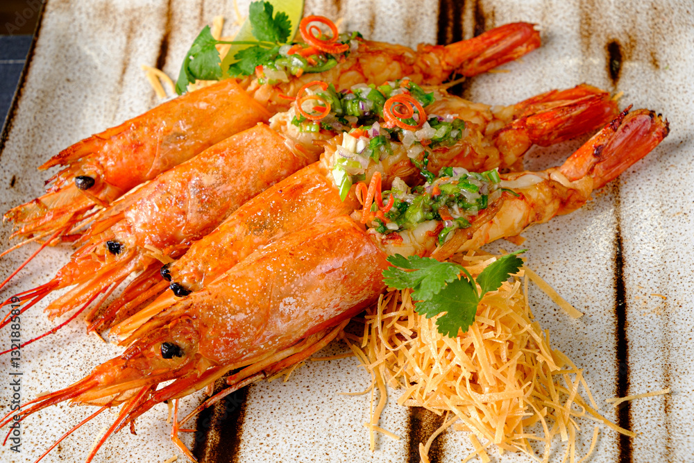 Succulent Argentinian shrimp lay on the table, garnished and ready for a culinary experience