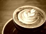 Close up Coffee cup Cappuccino on Wooden table Cafe shop