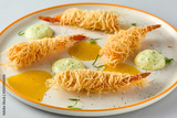 Crispy Kataifi Shrimp with Wasabi Sauce - Vibrant Gourmet Presentation