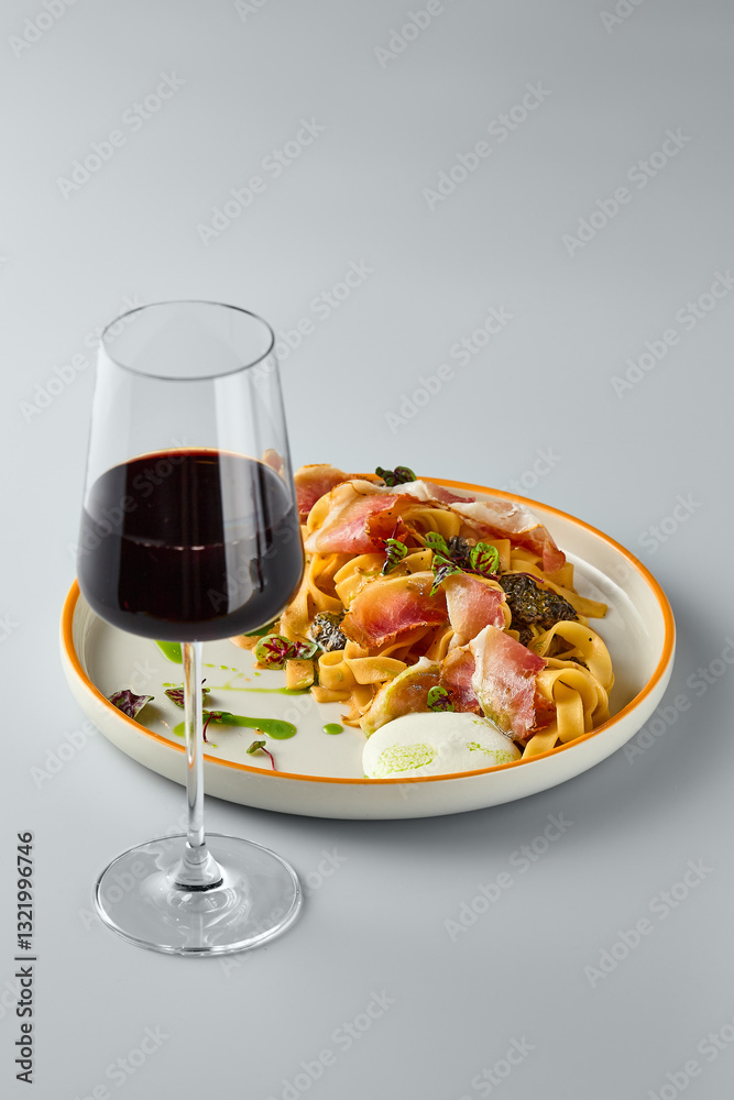 Elegant Gourmet Pasta with Ham and Cheese Mousse in Minimalistic Style