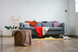 Clothes On Laundry Basket Against Blurry Background Of Messy Clothes At The Room