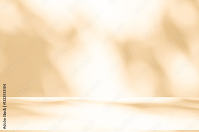 Wall interior background, studio and backdrops show products. with leaf shadow from window color beige and white. background for text insertion and presentation of product
