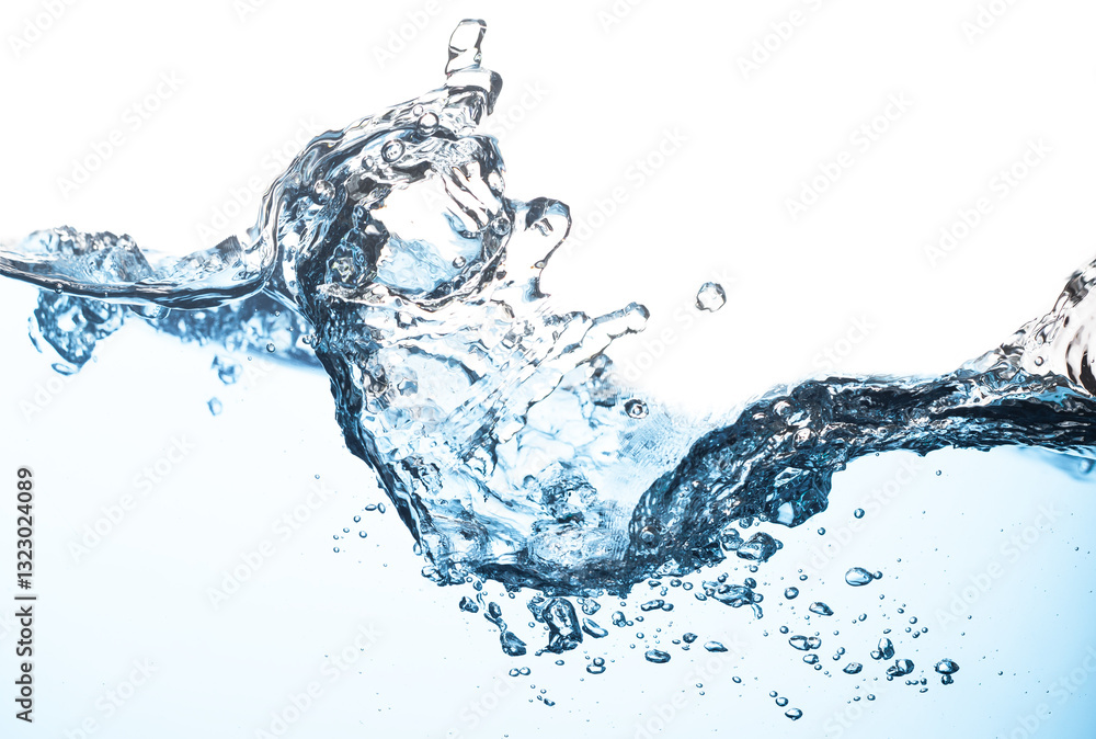 Water Splashing, Water Wave, Pure Water Drinking. Clear Water on White Background