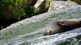 Milford Sound New Zealand closeup of a Fur Seal sleeping on rocks