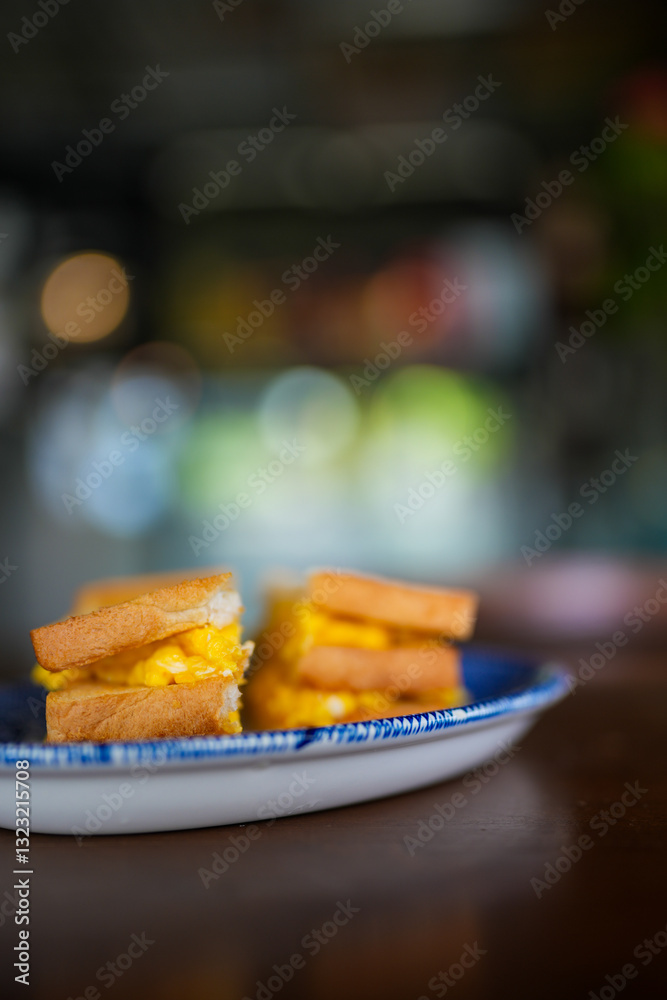 Egg sandwich with toasted bread. Selective focus. Healthy breakfast.