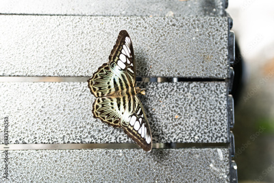 Light green brown swallowtail butterfly on camp table. Tropical butterfly in Thailand