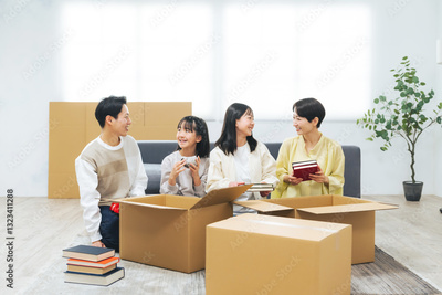 荷造り・荷解きする家族