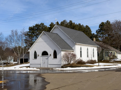 A wooden church in the snow