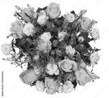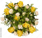 Yellow top view of blooming rose bouquet cut out isolated transparent background