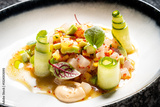 Fresh fish with colorful veggies makes a stunning dish, showcasing culinary creativity