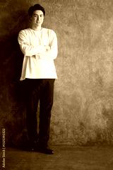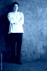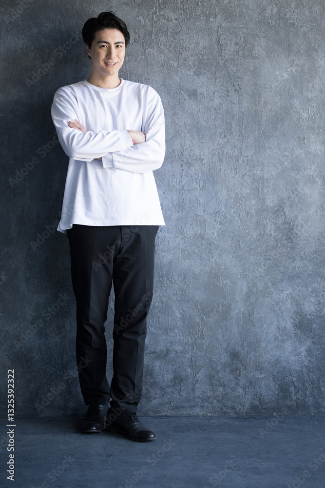 メンズの脱毛やスキンケアやカジュアルなイメージ ハンサムな男性の腕を組むカメラ目線の全身