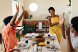 Family celebrating Brazilian cuisine with excitement