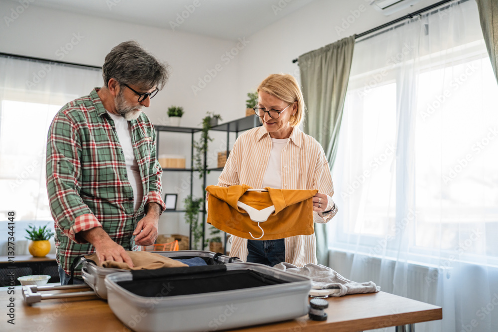 woman help man to pack suitcase baggage prepare for vacation holiday