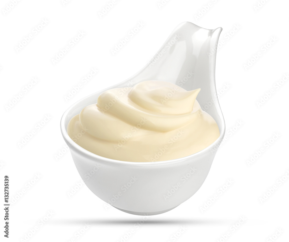 Mayonnaise sauce in bowl isolated on white background with clipping path
