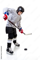 Junior Ice Hockey Player Isolated on White Background