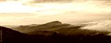 Beautiful landscape with fog. Rainforest ecosystem and healthy environment concept background. Panoramic mountain in deep countryside at Thailand. nature background.
