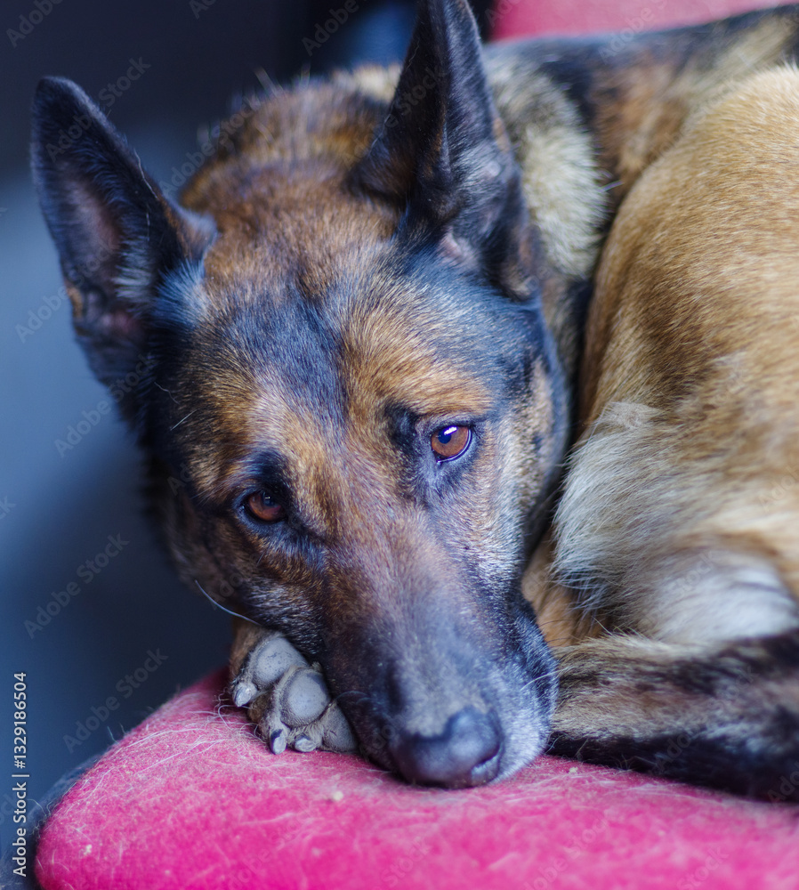 Portrait of a sad dog, Belgian Shepherd