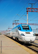 Afrosiyab high speed Bullet train at Bukhara Station in Uzbekistan