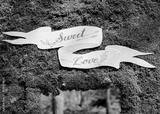 wedding sign on a moss. sweet love. decor.
