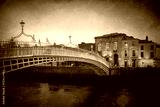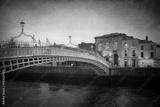 Vintage textured image of Dublin Ireland at Ha'penny bridge over the River Liffey