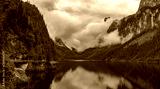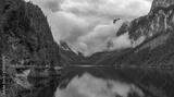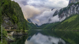 Alpine mountain lake in Austria, Gosau, Dachstein glacier behind