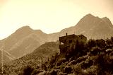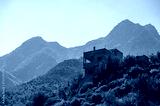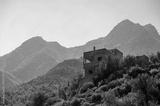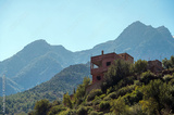 Mountains of the Atlas range in Morocco with a building in the foreground