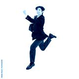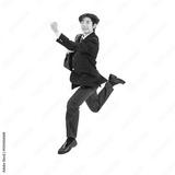 ジャンプする制服を着た男子学生 手作業で精密に切り抜いた背景透過全身写真PNG