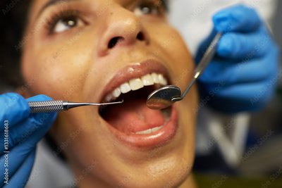 Close-Up of Dental Checkup with Patient and Dentist Exploring Oral Hygiene