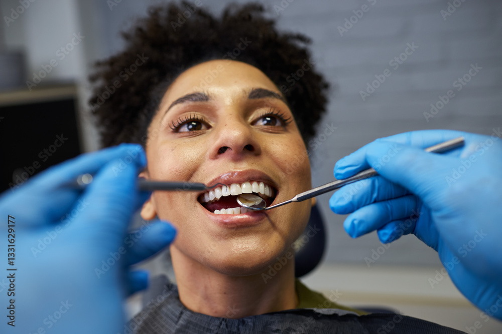 Patient Receiving Professional Dental Checkup From Dentist Using Tools in Clinic