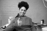 Smiling Woman Giving a Thumbs Up in a Dentist's Office