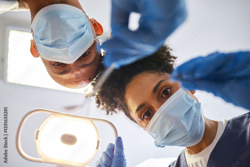 Dentists Performing Examination in a Bright Clinic Setting
