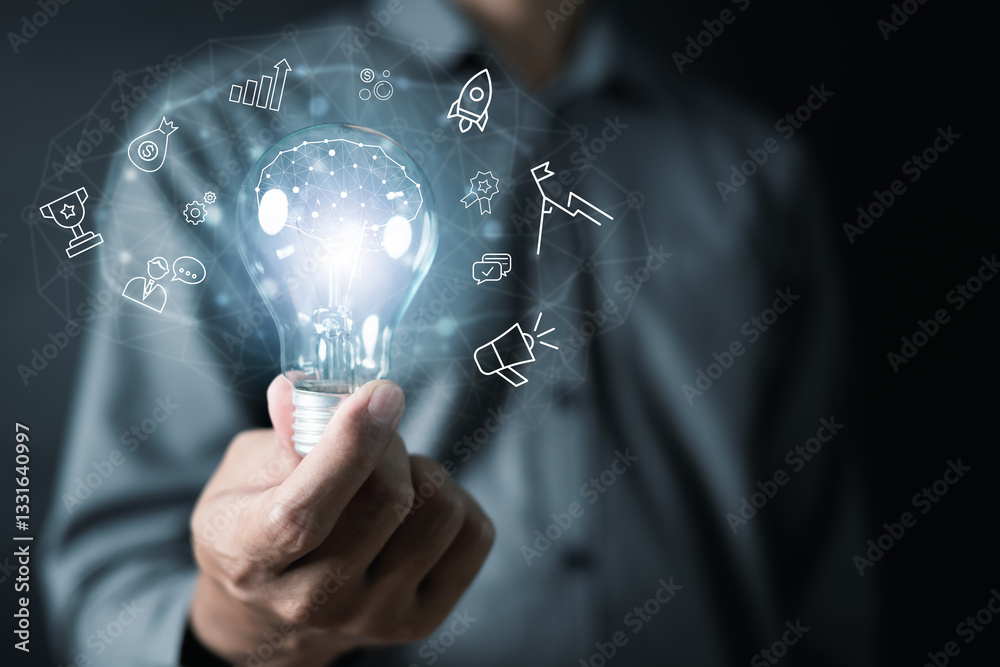 Lightbulb idea creativity innovation. Inspiration success invention. Learning imagination intelligence.