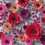 3d render, digital illustration, red pink paper flowers, Valentine's day floral background