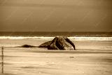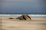 dead Male gray whale on the shore of bahia magdalena baja california sur mexico in front of pacific ocean