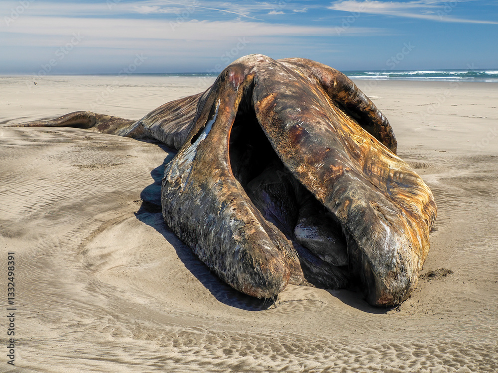 dead Male gray whale on the shore of bahia magdalena baja california sur mexico