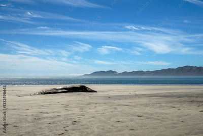 dead Male gray whale on the shore of bahia magdalena baja california sur mexico