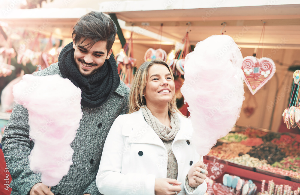 Portrait of a beautiful smiling couple on dating outdoors. Love,