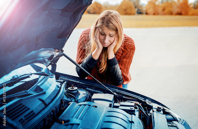 Problem with a car. A broken car on the road