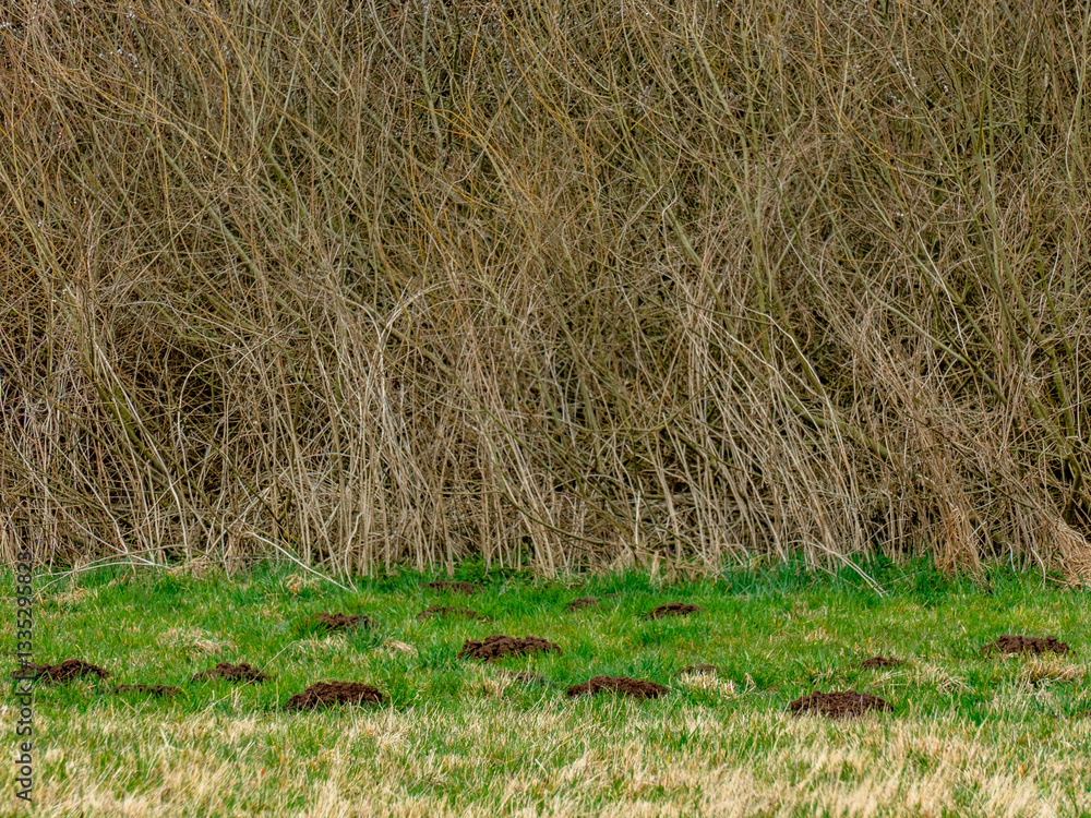 Viele Wühlmaus häufen auf einer Wiese im Frühjahr