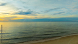 Enjoy a panoramic view of the skyline. The sun rises in the morning sky with colorful clouds. and beautiful cloud patterns In the soft light of the morning