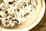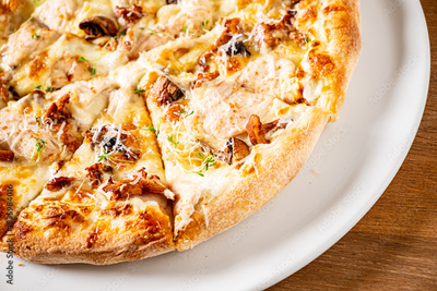 Savoring a gourmet pizza topped with savory mushrooms and melted cheese on a warm evening